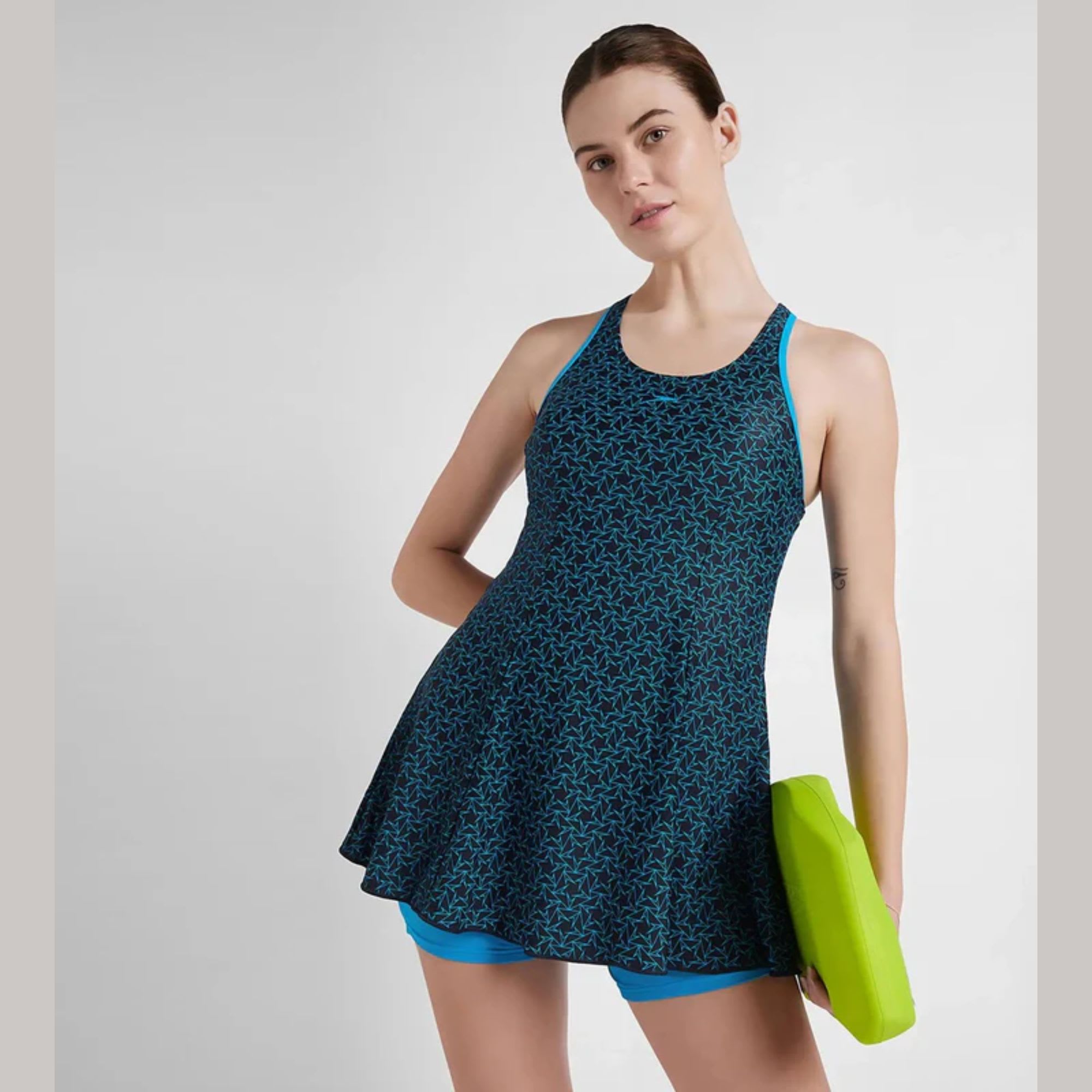Speedo Women’s Endurance 10 Boomstar Printed True Navy & Pool Boyleg Swimdress